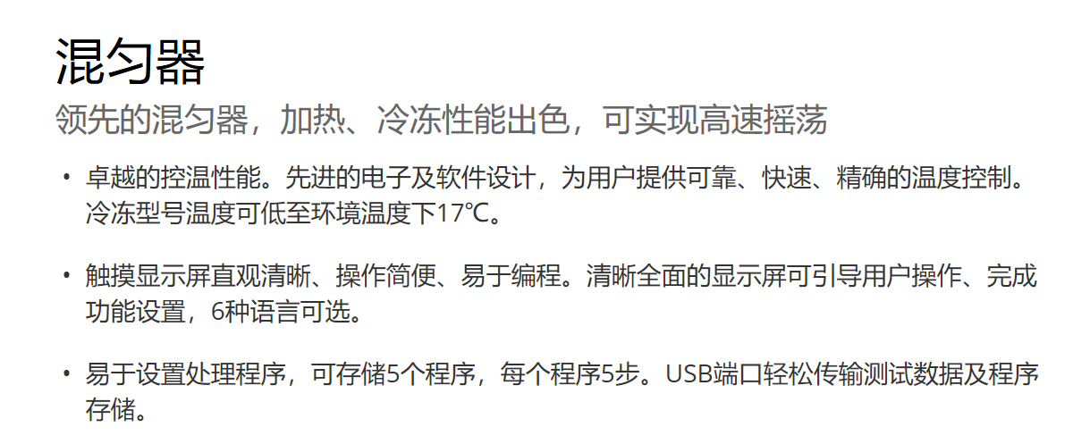 創(chuàng)新設(shè)計(jì)的奧豪斯冷凍恒溫培養(yǎng)搖床可降溫至室溫以下10℃,亦可升溫至65℃用于培養(yǎng)生物樣品,提供可靠、可重復(fù)的結(jié)果。所有型號(hào)均帶易于讀數(shù)、獨(dú)立顯示搖蕩參數(shù)的觸控式操作面板,且安全功能可保護(hù)樣品及使用者的安全。堅(jiān)固耐用的三偏心軸驅(qū)動(dòng)及微處理器,實(shí)現(xiàn)可靠、穩(wěn)定的搖蕩動(dòng)作。