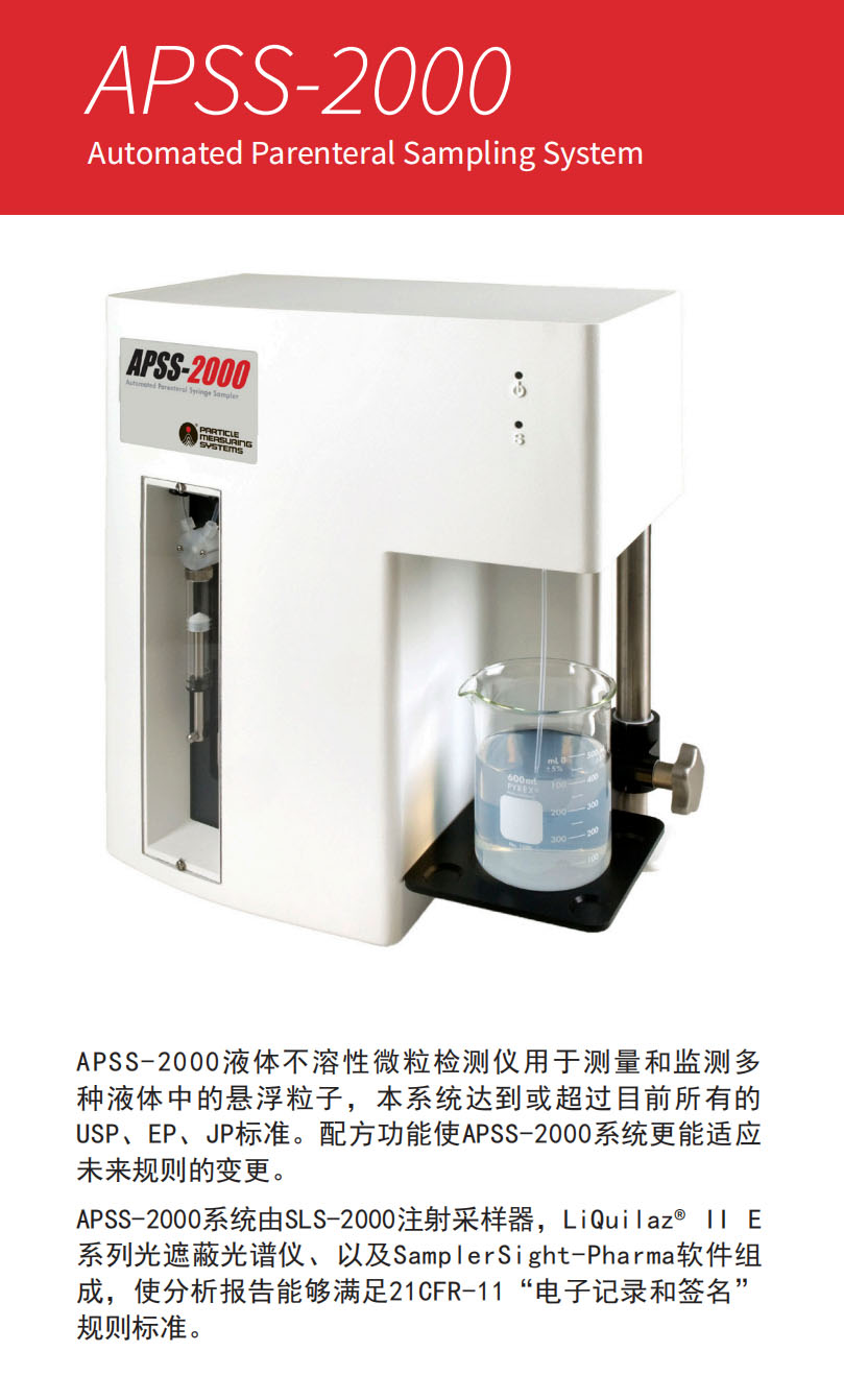 提及液體藥物生產(chǎn)的質(zhì)量控制,在最小化浪費的同時符合規(guī)定是很重要的。APSS-2000注射用藥物顆粒計數(shù)器計數(shù)多種液體中的懸浮顆粒物,包括注射用藥物,以滿足所有目前的美國,歐盟和JP藥典標準。與用于注射/腸外的USP 788一樣,APSS-2000制藥系統(tǒng)具有配方功能,使其能夠適應(yīng)未來的監(jiān)管變化,較小的樣本量可以減少浪費昂貴產(chǎn)品。