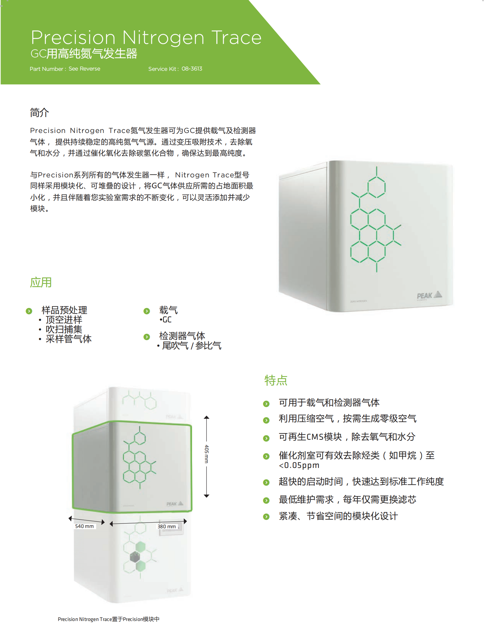 Precision Nitrogen Trace氮?dú)獍l(fā)生器可為GC提供載氣及檢測(cè)器氣體, 提供持續(xù)穩(wěn)定的高純氮?dú)鈿庠?。通過變壓吸附技術(shù),去除氧氣和水分,并通過催化氧化去除碳?xì)浠衔铮_保達(dá)到最高純度。與Precision系列所有的氣體發(fā)生器一樣, Nitrogen Trace型號(hào)同樣采用模塊化、可堆疊的設(shè)計(jì),將GC氣體供應(yīng)所需的占地面積最小化,并且伴隨著您實(shí)驗(yàn)室需求的不斷變化,可以靈活添加并減少模塊。