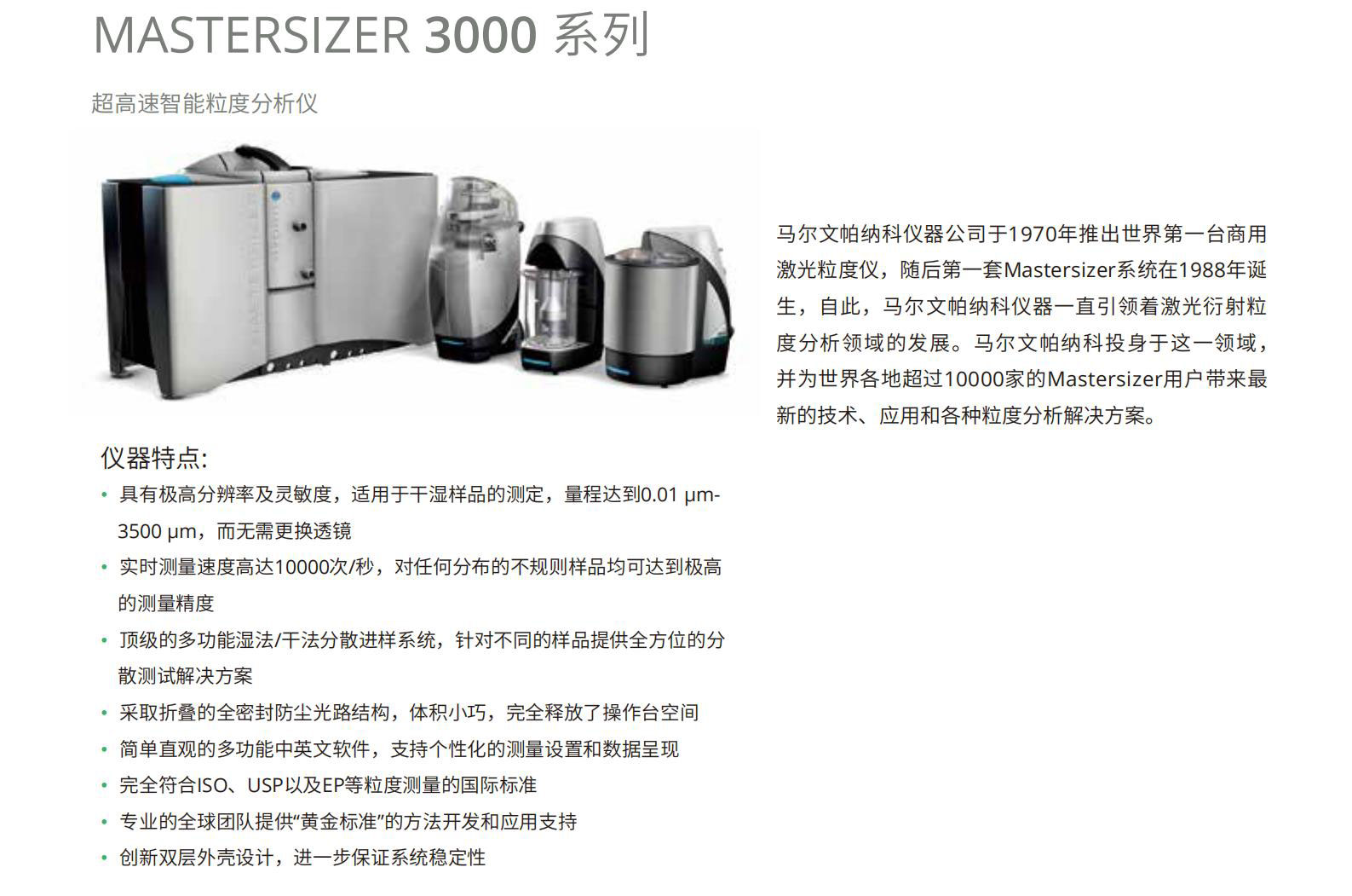 MASTERSIZER 3000 系列 超高速智能粒度分析儀
